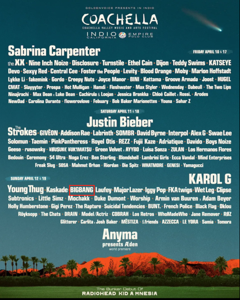 2026年コーチェラBIGBANGが復活、出演!日程、視聴方法等紹介